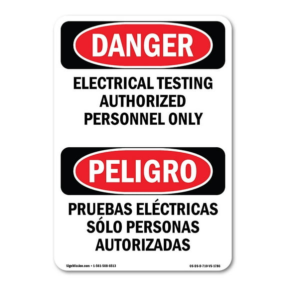 SignMission OS-DS-D-35-VS-1786 OSHA Danger Sign - Electrical Testing BilingualSignMission OS DS D 35 VS 1786 OSHA Danger Sign Electrical Testing BilingualOSHA Danger Sign Electrical Testing Bilingual Decal Protect Your Business Construction Site Warehouse Shop Area Made in The USAOSHA Danger Sign Electrical Testing Bilingual Decal Protect Your Business Construction Site Warehouse Shop Area Made in The USAOSHA Danger Sign Electrical Testing Bilingual Plastic Sign Protect Your Business Construction Site Warehouse Shop Area Made in The USAOSHA Danger Sign Electrical Testing Bilingual Plastic Sign Protect Your Business Construction Site Warehouse Shop Area Made in The USA