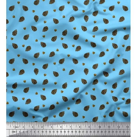 Hero image 0 of Soimoi Blue Cotton Poplin Fabric Oaknut & Fruits Print Sewing Fabric BTY 42 Inch Wide, 0 of 3