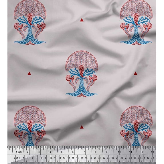 Soimoi Rayon Fabric Tree Block Printed Fabric 1 Yard 42 Inch Wide