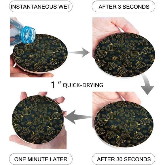 Hero image 0 of FMSHPON Halloween Pumpkin Set of 4 Round Coaster for Drinks, Absorbent Ceramic Stone Coasters Cup Mat with Cork Base for Home Kitchen Room Coffee Table Bar Decor, 0 of 3