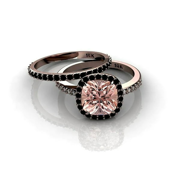 10 optionsAvailable in additional 10 options$49999current price $499.99More options from $469.112.50 Carat Morganite And Black Diamond Moissanite Halo Trio Ring Set 925 Sterling Silver With 18k Rose Gold Plating