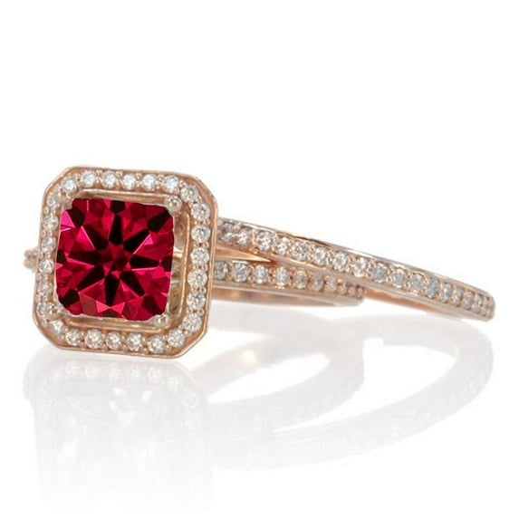 Hero image 0 of 2.55 Carat Beautiful Ruby 7mm Cushion Cut And Moissanite Diamond Halo Wedding Ring Set on 10k White Gold, 0 of 2