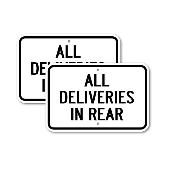 (2 Pack) All Deliveries In Rear | 18" X 24" Heavy-Gauge Aluminum Sign | Rust Free Aluminum, Weather Resistant, Waterproof, Fade Resistant, 2 Pre-drilled Holes