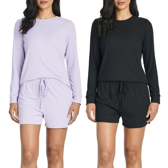 Hero image 0 of 2 Pack: Women's Ribbed Knit Long Sleeve Top and Shorts Pullover Lounge Pajama Set (Available In Plus Size), 0 of 6