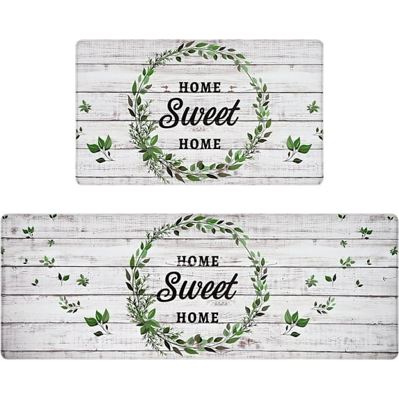 - FARMHOUSE PATTERN DESIGN: The home sweet home anti-fatigue kitchen mats for floor are printed with farmhouse style board and vibrant green leaves, with clear patterns and bright colors. Beautiful kitchen mats are perfect for home decor, making the kitchen look nice and stylish. The cute patterns add a lot of vitality to the room and make your work more enjoyable.