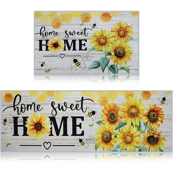 - Sunflower Pattern: the sunflower kitchen rugs are designed with vibrant sunflowers and vivid bees, also printed with [Home Sweet Home]; Welcome guests to your home with this indoor welcome mat, and adds charm to your home
