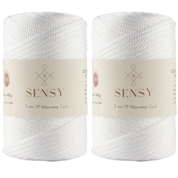 2 Skeins of Sensy Premium 5mm 104 Yards Polyester Rope 100% Polypropylene Cord Macrame Cord 5mm Crochet Bag Cord Macrame Rope Crochet Thread Gift for Knitter (White)