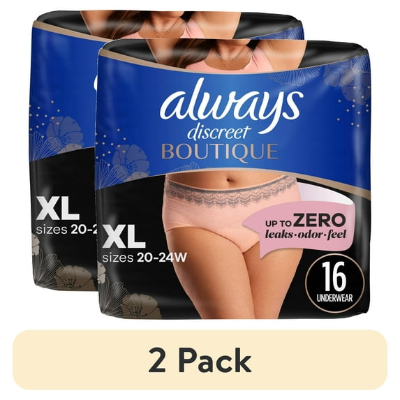 - 2-pack of Always Discreet Boutique Incontinence Underwear, Maximum Protection, Size XL, Rosy, 16 Ct