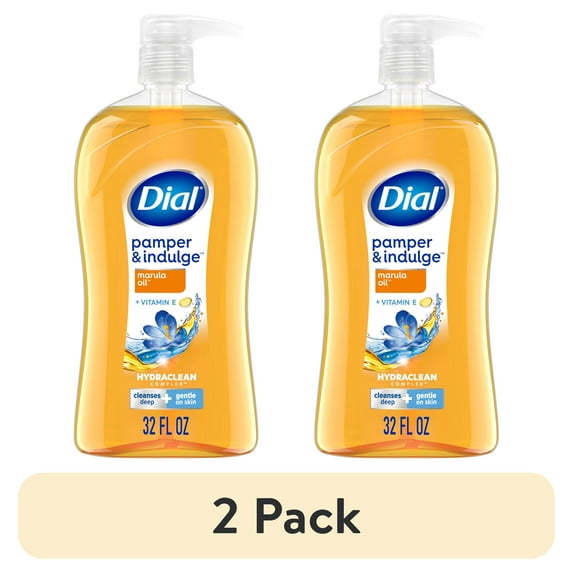 - 2-pack of Dial Body Wash, Pamper & Indulge Marula Oil, 32 Fl Oz, Hydraclean Complex & Vitamin E, Gentle, Leaves Skin Feeling Nourished, Dermatologist-Tested, No Parabens & Sulfates