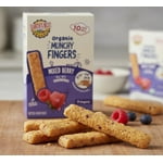As your little one grows, so do their needs and palate − introduce your little one to the exciting world of finger food with Earth's Best Organic Munchy Fingers. Available in a variety of flavors, our first snacks let your little one try new tastes, textures, and flavor combinations. Mixed Berry Flavor is made with real fruit and has a taste little ones love. Now that your baby has learned to pick up finger foods, the next challenge is self-feeding, and our Munchy Fingers offer a yummy way to perfect this new skill! These crunchy snacks promote radial digital grasp and helps develop grip & dip skills. Pack your bag with these yummy snacks, or stock your pantry at home. Wholesome flavor and wholesome fun−that's what makes us the Earth's Best brand.