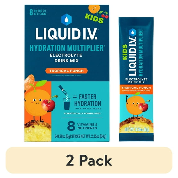 4 optionsAvailable in additional 4 options$1769current price $17.69Liquid I.V.® Tropical Punch Hydration Multiplier® for Kids Powdered Electrolyte Drink Mix, 8 Count
