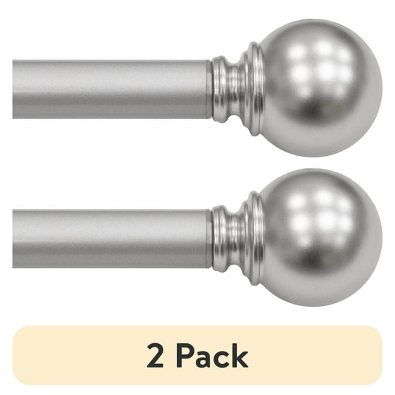 - 2-pack of Mainstays 1" Nickel Ball Adjustable Single Curtain Rod, 84-120"