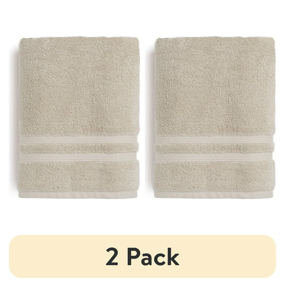 (2 pack) Mainstays Performance Cotton Bath Towel, Super Soft Quick Dry Fade Resistant, Solid Beige