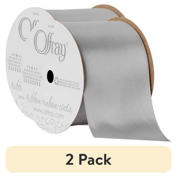 - 2-pack of Offray Ribbon, Opal Gray 2 1/4 inch Single Face Satin Polyester Ribbon, 9 feet