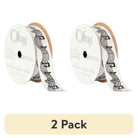 - 2-pack of Offray Ribbon, White 7/8 inch Musical Notes Satin Ribbon, 9 feet