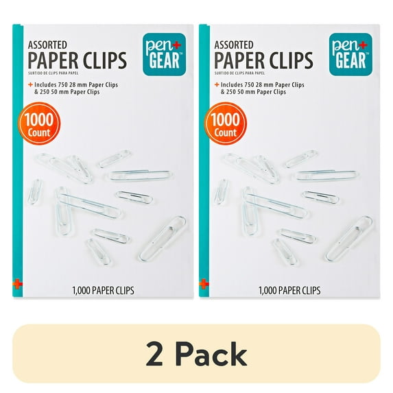 - 2-pack of Pen+Gear Paper Clips, Silver, Assorted Sizes, 1000 Count