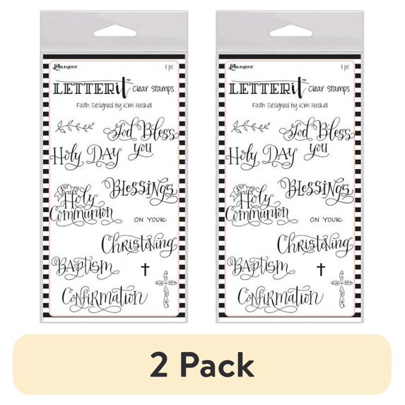 Ranger Letter It Clear Stamp Faith- 11 clear stamps with a hand lettered look for any occasion. Captions include: holy day, baptism, confirmation, blessings, and more. Largest measures approximately 2.5"x .88". Use with an acrylic block, sold separately.