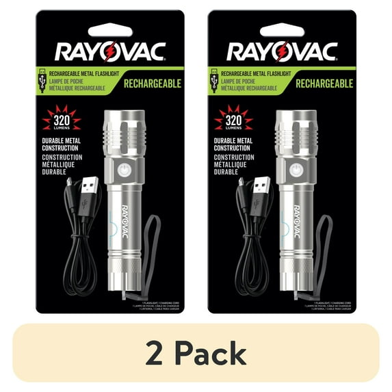 (2 pack) Rayovac Metal Rechargeable LED Flashlight with USB Charging Cable, 300 Lumens, 18650 battery2 pack Rayovac Metal Rechargeable LED Flashlight with USB Charging Cable 300 Lumens 18650 batteryRayovac Metal Rechargeable LED Flashlight with USB Charging Cable 300 Lumens 18650 battery