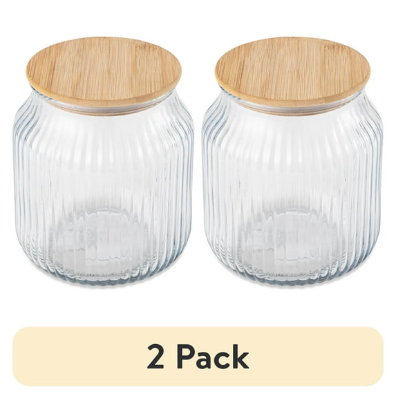 (2 pack) Thyme & Table Medium (2.6 L) Ribbed Glass Kitchen Organization Jar with Bamboo Lid, Clear2 pack Thyme Table Medium 2 6 L Ribbed Glass Kitchen Organization Jar with Bamboo Lid ClearThyme Table Medium 2 6 L Ribbed Glass Kitchen Organization Jar with Bamboo Lid Clear