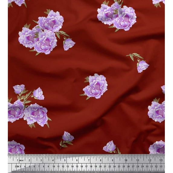 Soimoi Velvet Fabric Leaves & Peony Floral Decor Fabric Printed Yard 58 Inch Wide