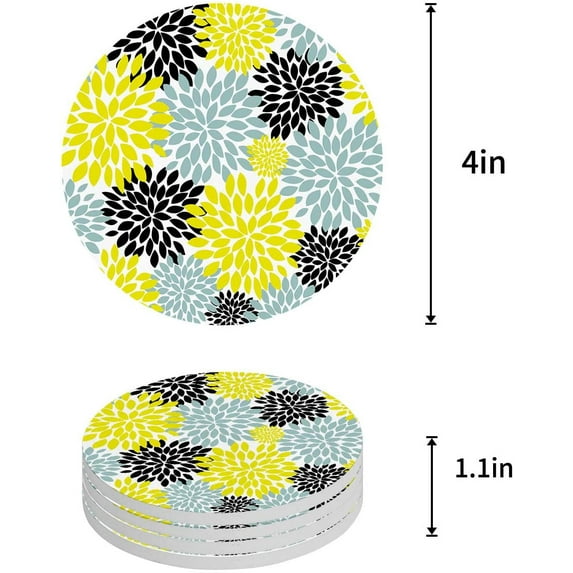 Hero image 0 of FMSHPON Multicolor Dahlia Pinnata Flower Customized Yellow,Black,Teal Set of 6 Round Coaster for Drinks, Absorbent Ceramic Stone Coasters Cup Mat with Cork Base for Coffee Table Bar Decor, 0 of 5