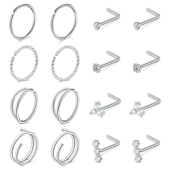 21 out of 5 Stars. 2 reviewsSave withShipping, arrives in 2 days9pcs Silver Nose Rings for Women Men, L Shaped Nose Rings Studs, Stainless Steel Nostril Piercing Jewelry $9.99