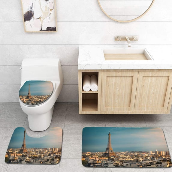 Hero image 0 of PUDMAD Skyline Paris Eiffel Tower During Sunset Paris France 3 Piece Bathroom Rugs Set Bath Rug Contour Mat and Toilet Lid Cover, 0 of 2