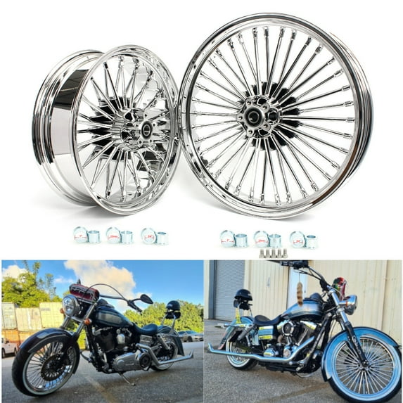 Shipping, arrives in 3+ days21" 18" Front Rear Spoke Wheels Rim Set for Harley Davidson Dyna Fat Bob FXDF Low Rider FXDL Street Bob FXDB Wide Glide FXDWG 2006-2017 2007 2008 2009 2010 2011 2012 2013 2014 2015 2016 Chrome $624.95