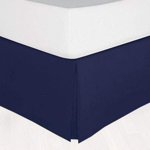 21-Inch Drop Twin Size 39" x 75" Navy Blue Solid Bed Skirt Split Corner Pleated Style Easy Fit Easy Care 100% Egyptian Cotton 400 Thread Count