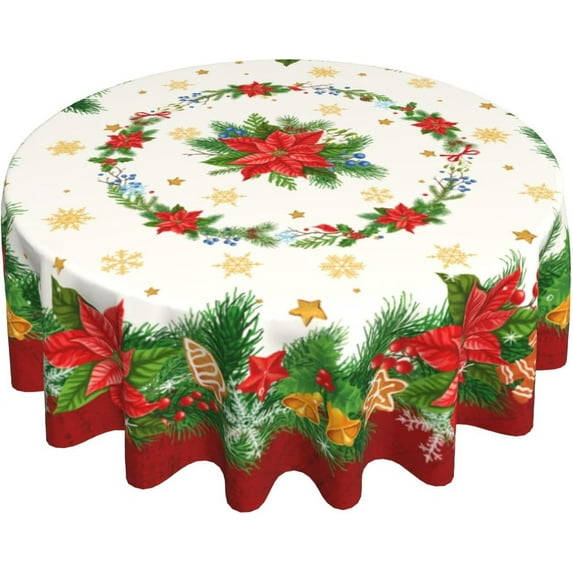 Hero image 0 of Christmas Tablecloth 60 Inch, Winter Poinsettia Floral Round Table Cloth, Xmas Snowflake Holly Berry Table Cover for Kitchen Dining Decor, Waterproof Reusable Tablecloths for Holiday Party, 0 of 6