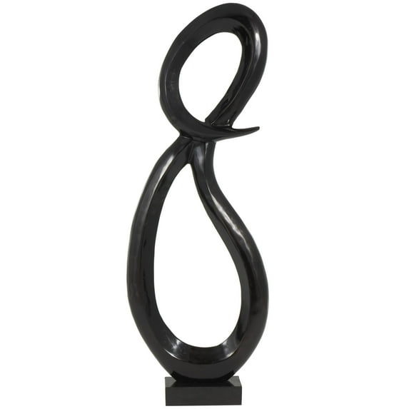 - This matte black home decor figurine boasts a round, looped shape and a square base that creates a sense of movement and modern sophistication
