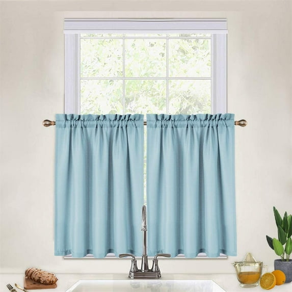 2 Pcs Tier Curtain, Rod Pocket Waterproof Waffle Weave Textured Small Curtain