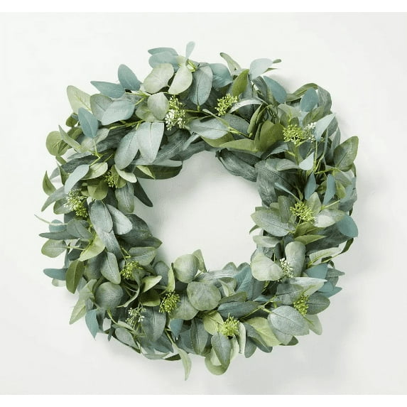 - Round seeded eucalyptus wreath with a simple, clean design - Features strands of faux-eucalyptus and seeded accents with realistic detailing - Lightweight design makes it easy to hang - Perfect for adding a touch of green to any room without any maintenance