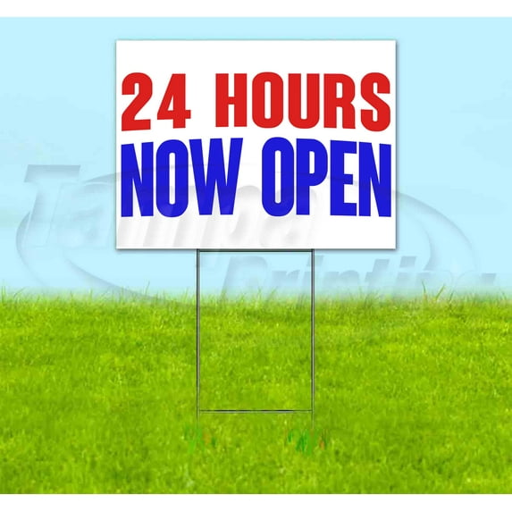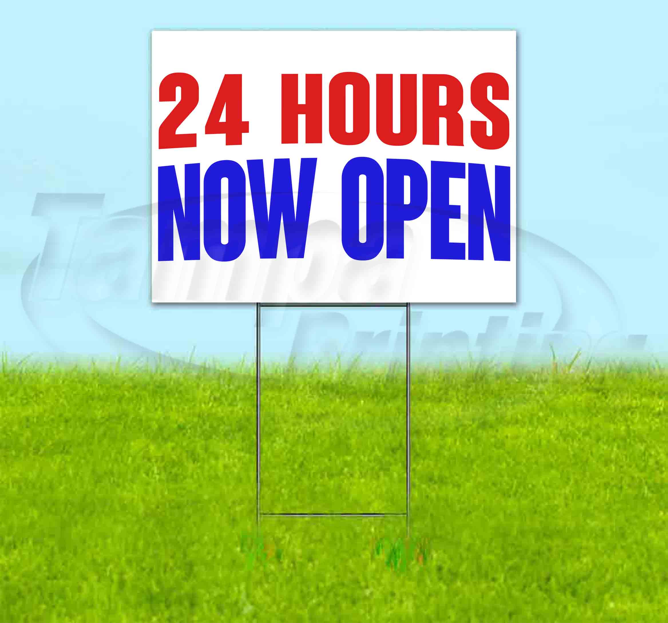 24 Hours Now Open (18" x 24") Yard Sign, Includes Metal Step Stake
