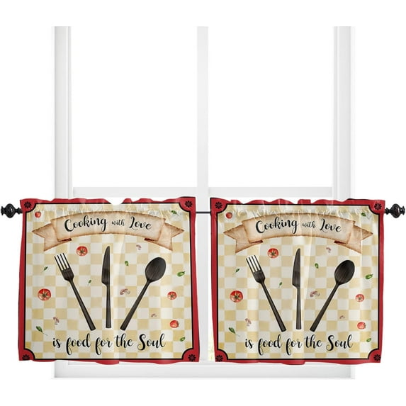 Hero image 0 of 24 Inch Long Tier Curtains for Kitchen, Kitchen Retro Tableware Plaid Red Border Bathroom Window Curtains Rod Pocket Short Curtains Window Treatment Tiers for Living Room Farmhouse 2 Panels, 0 of 5