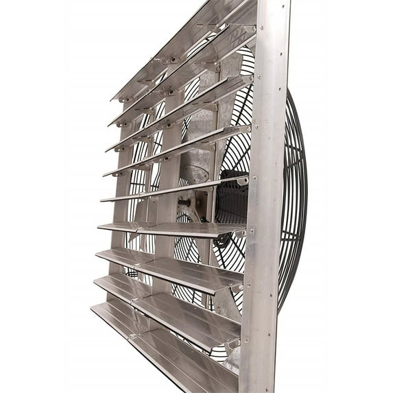 Features and Benefits:High Efficiency, Quiet OperatingPre-Wired with 9ft cord 115vGuards feature industrial grat polyester powder coatingHeavy duty aluminum intake shutter with reinforced cornersShutters feature weather stripping on each louverWall-Mounted Shutter Exhaust Fan, 24"
