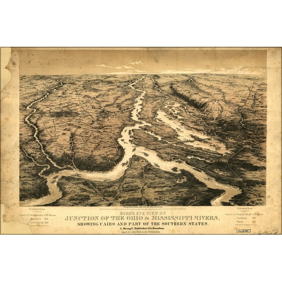 24"x36" Gallery Poster, birdseye map Ohio river & Mississippi River 1861