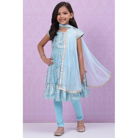 Hero image 0 of Blue Cotton Flared Suit Set, 0 of 6