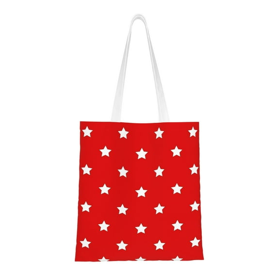 Hero image 0 of DouZhe Reusable Grocery Bags, Patriotic Red Stars Lightweight Polyester Canvas Cloth Tote Bag for Travle Gym Shopping School, 15" x 16", 0 of 7