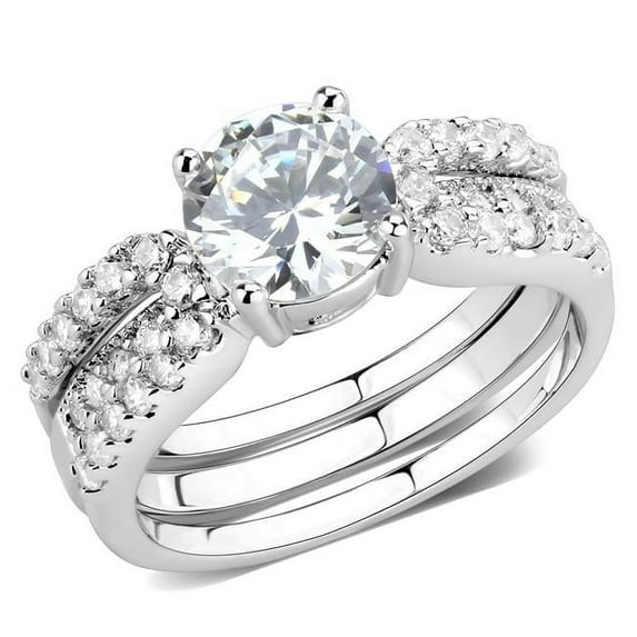 Alamode 3W1554-8 Women Rhodium Brass Ring with AAA Grade CZ in Clear - Size 8