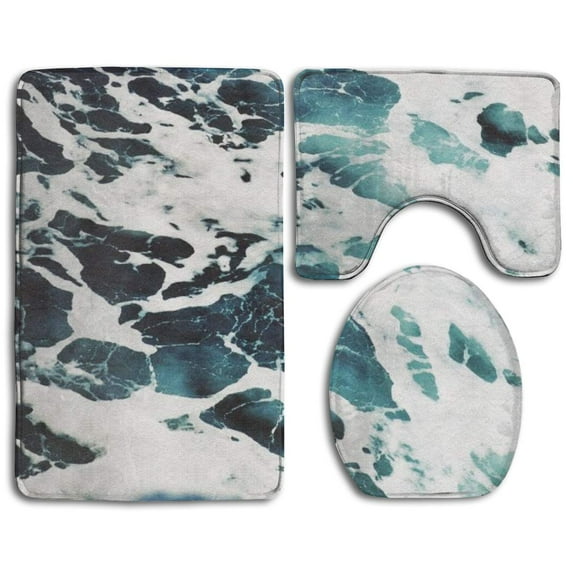 Hero image 0 of GOHAO Beach Foam Wave 3 Piece Bathroom Rugs Set Bath Rug Contour Mat and Toilet Lid Cover, 0 of 2