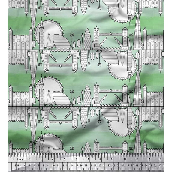 Hero image 0 of Soimoi Green Silk Fabric London Theme Architectural Print Sewing Fabric Yard 42 Inch Wide, 0 of 3