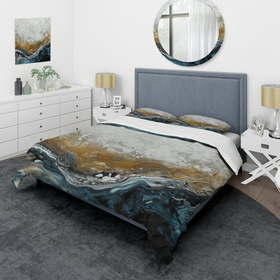 Designart "Modern Contemporary Abstract Grey and Gold II" Abstract Marble Bedding Covert Set - Modern Grey Abstract Bed Set With 1 ShamDesignart Modern Contemporary Abstract Grey and Gold II Abstract Marble Bedding Covert Set Modern Grey Abstract Bed Set With 1 Sham
