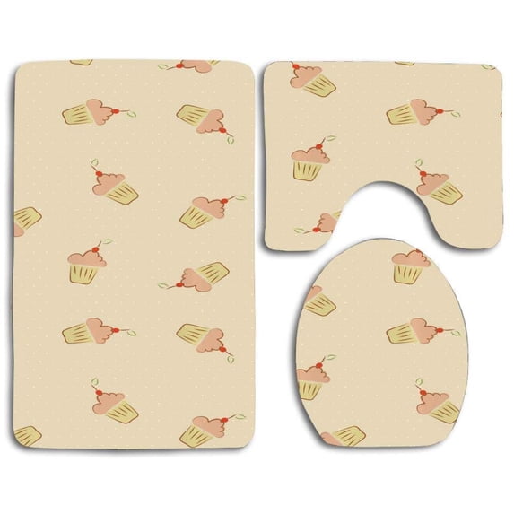 Hero image 0 of PUDMAD Cupcake Frosting on a Polka Dotted weets 3 Piece Bathroom Rugs Set Bath Rug Contour Mat and Toilet Lid Cover, 0 of 2