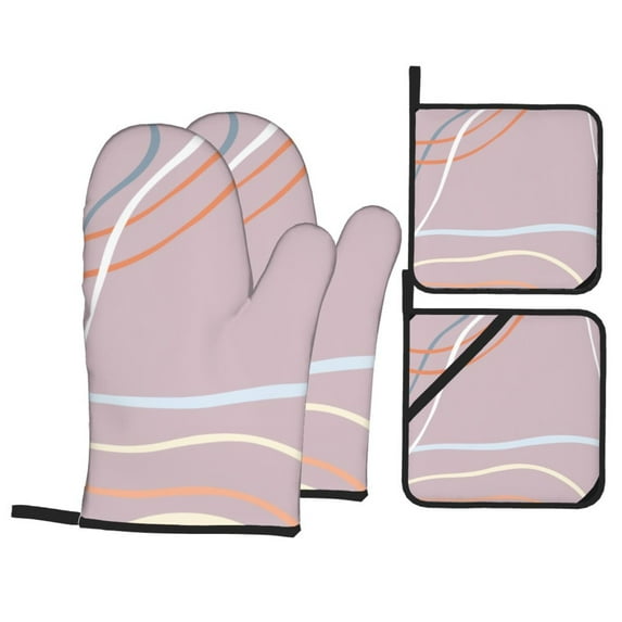 Hero image 0 of YFYANG Oven Mitts and Pot Holders Sets 4 Pieces, Non-Slip Heat Resistant Pink Line Art Kitchen Glove Pot Mat for Cooking and Baking, 0 of 8