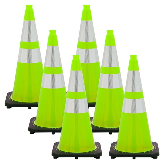 28 Inch Safety Green Reflective Traffic Cones (6 Pk)
