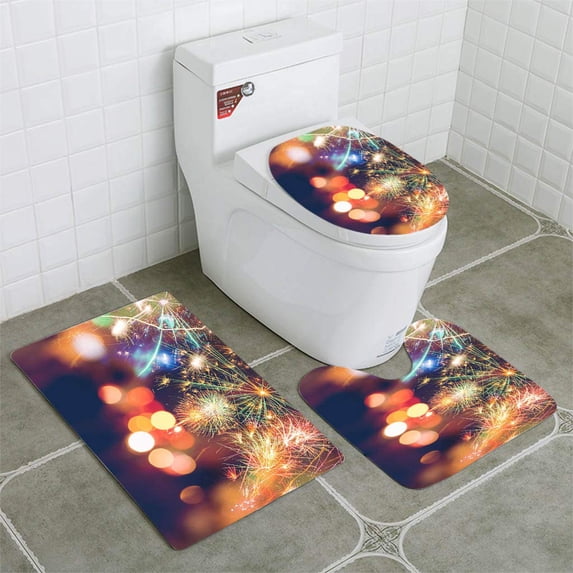 Hero image 0 of PUDMAD New Year Fireworks Love 3 Piece Bathroom Rugs Set Bath Rug Contour Mat and Toilet Lid Cover, 0 of 2