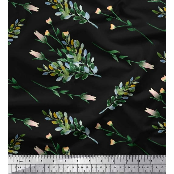 Hero image 0 of Soimoi Black Rayon Crepe Fabric Leaves & Tulip Floral Print Sewing Fabric Yard 46 Inch Wide, 0 of 3
