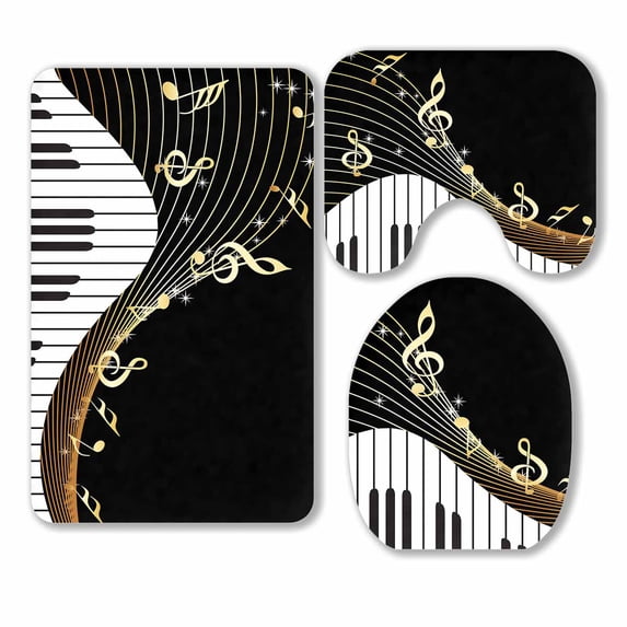 Hero image 0 of PKQWTM Black Musical Instrument Notes 3 Piece Bathroom Rugs Set Bath Rug Contour Mat and Toilet Lid Cover, 0 of 2