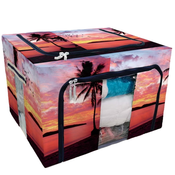 Hero image 0 of PKQWTM Sunset Birds at Rebak Island Palm Tree Storage Bag Clear Window Storage Bins Boxes Large Capacity Foldable Stackable Organizer With Steel Metal Frame For Bedding,Clothes,Closets, Bedrooms, 0 of 3